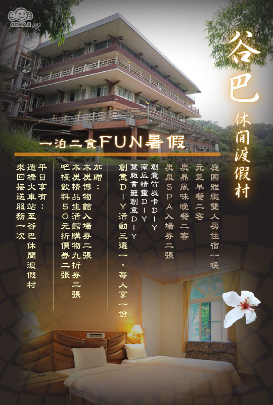【3.6折 只要1999 苗栗-谷巴休閒渡假村】(優惠如下)